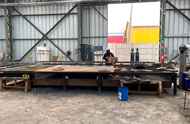Cortadora de plasma CNC con mesa de corte de 1,5x6 mts. Esta máquina es apta para trabajar con planchas de 12mm hasta 40mm de espesor. (Se aceptan diseños en formato AUTOCAD)