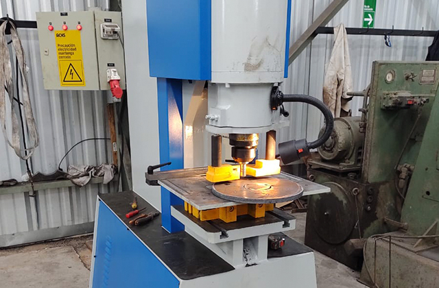 Punzonadora que realiza perforaciones desde 10mm hasta 26mm de diámetro. Trabaja en espesores desde 1mm hasta 6mm.